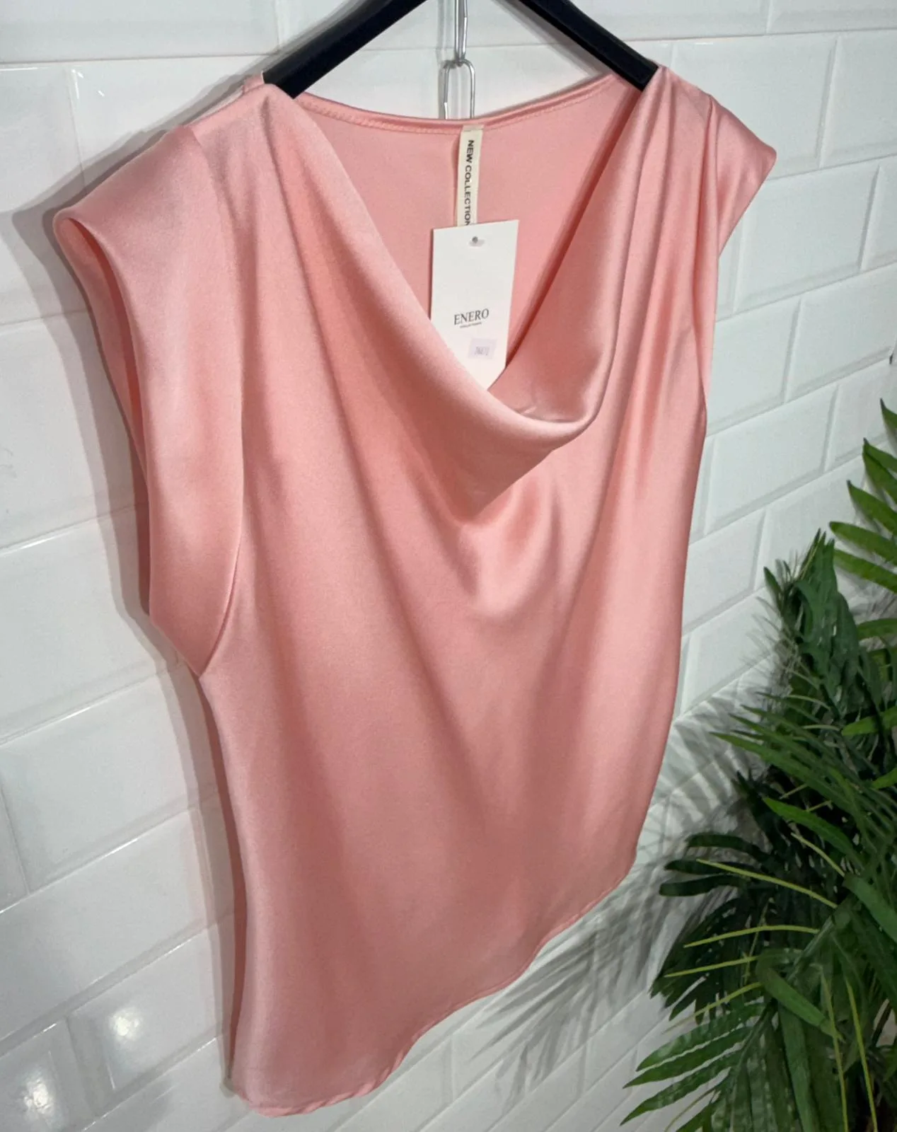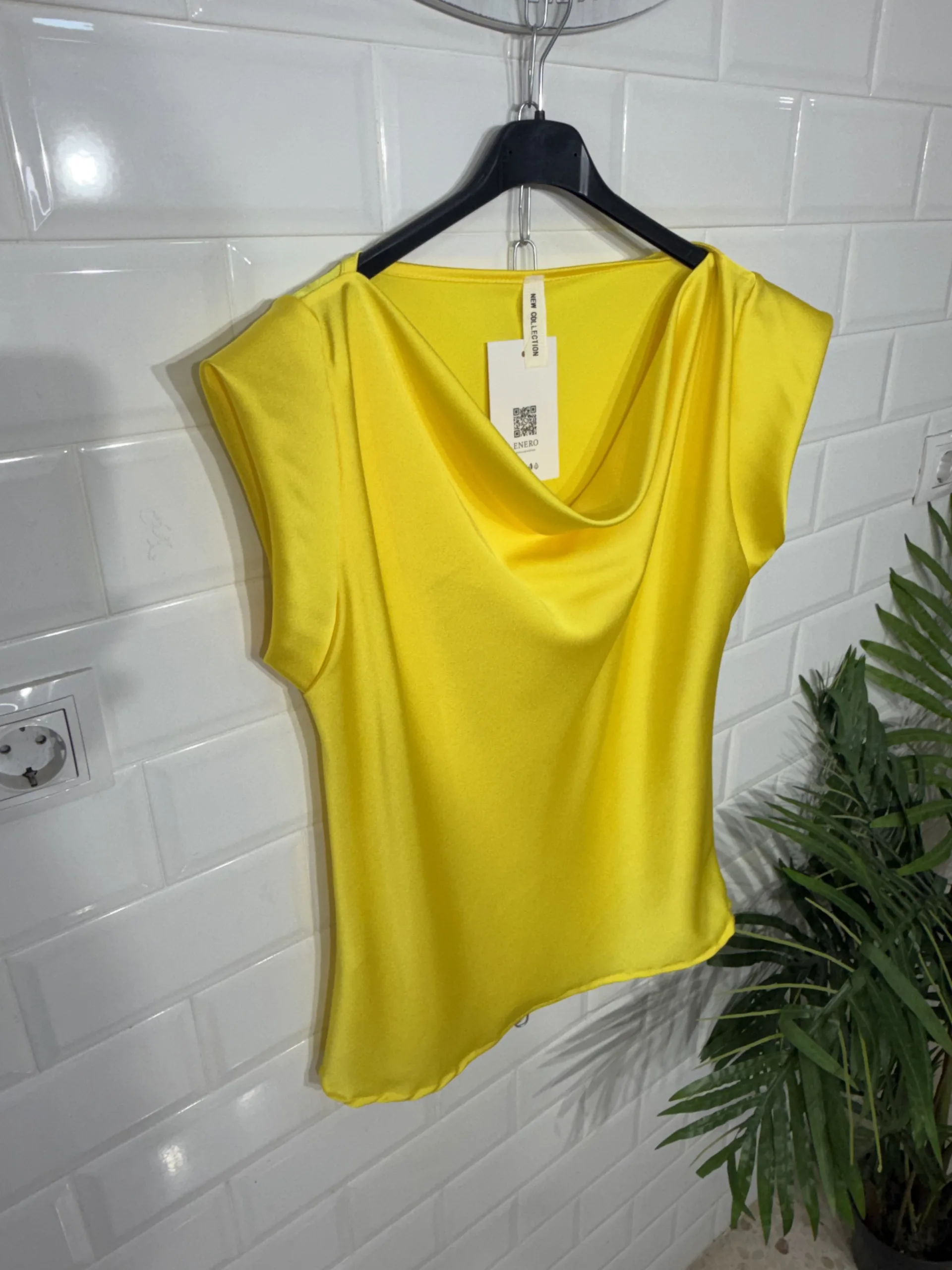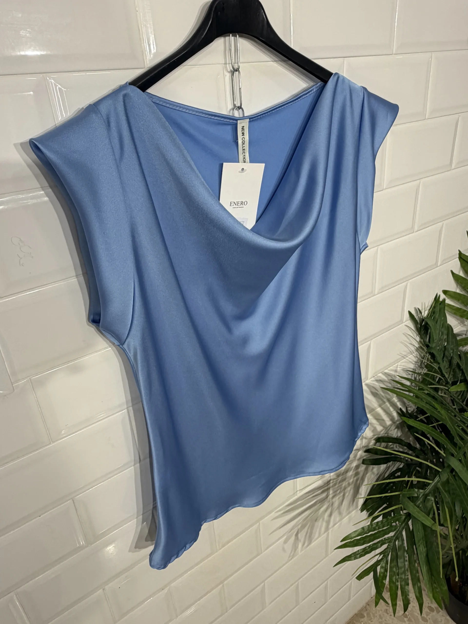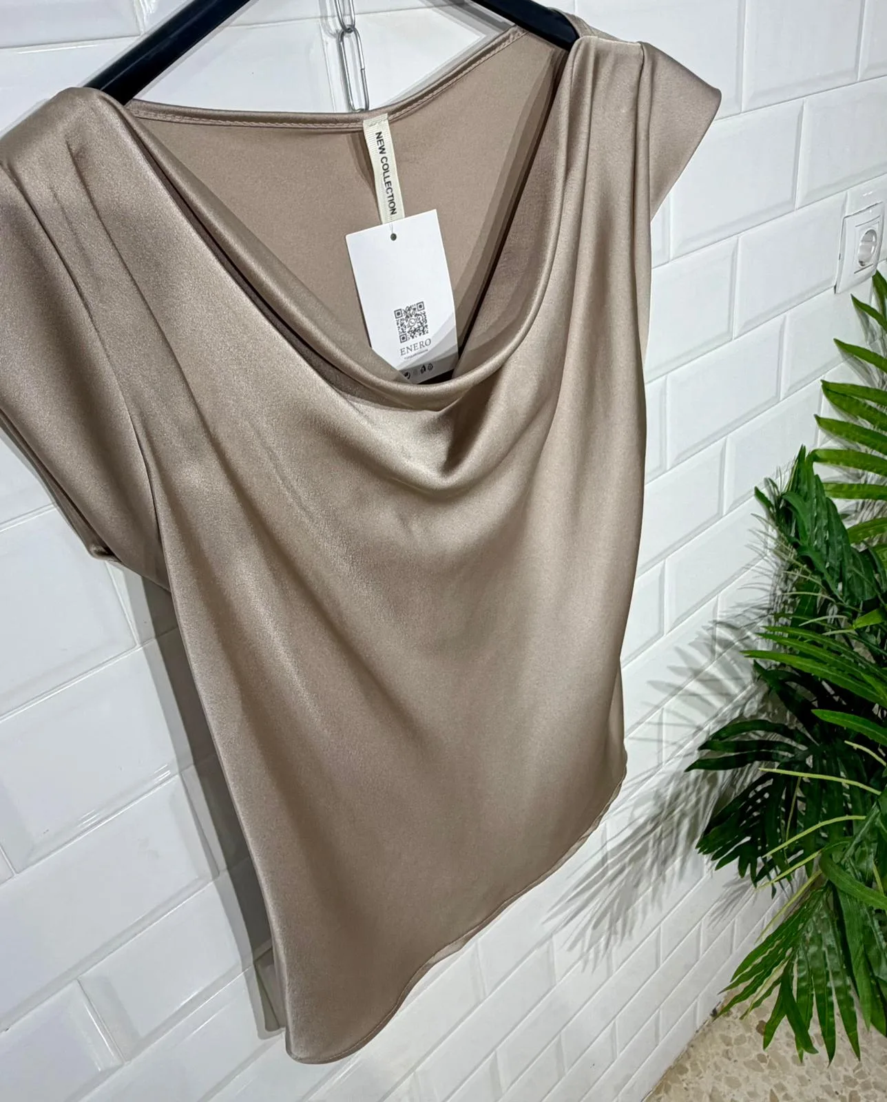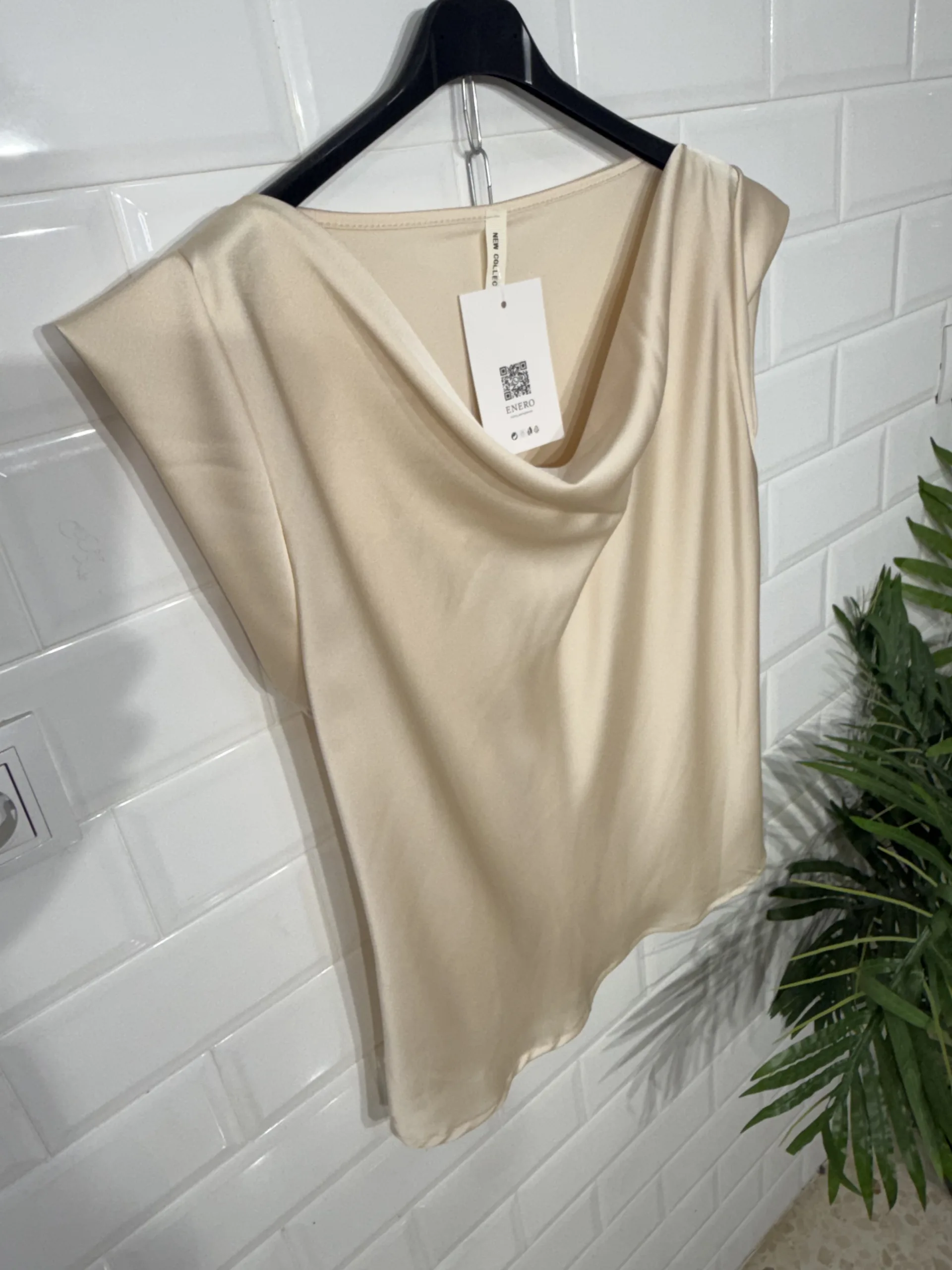Blusa de satén con cuello en cascada.
