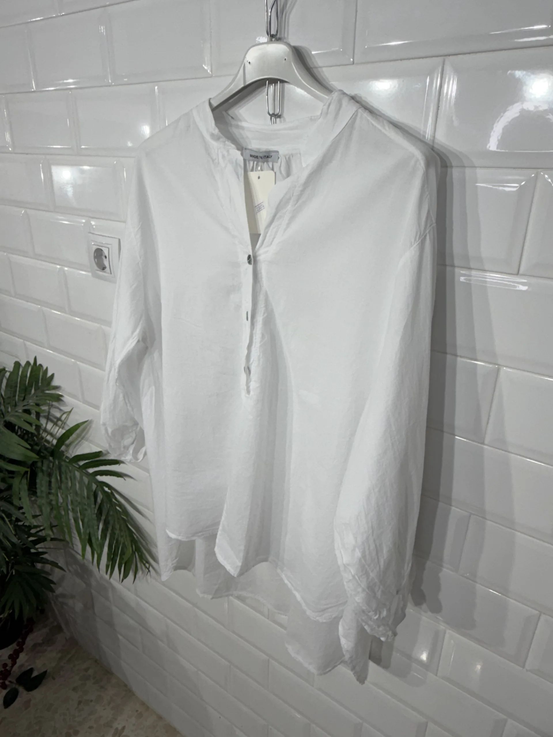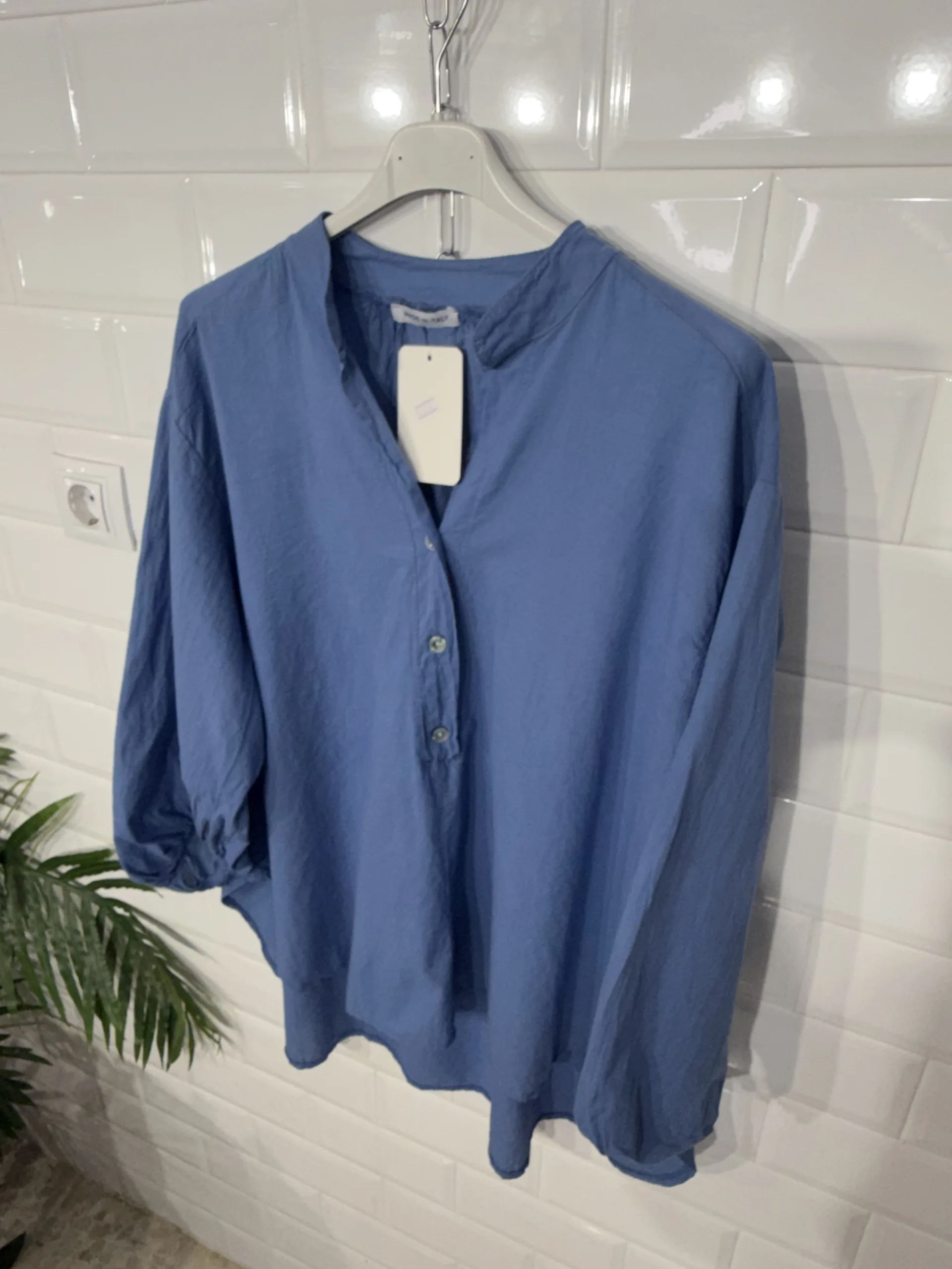 “La blusa de algodón, con sus delicados puños de manga francesa y su corte bombacho, combina la comodidad con un encanto romántico y atemporal.”