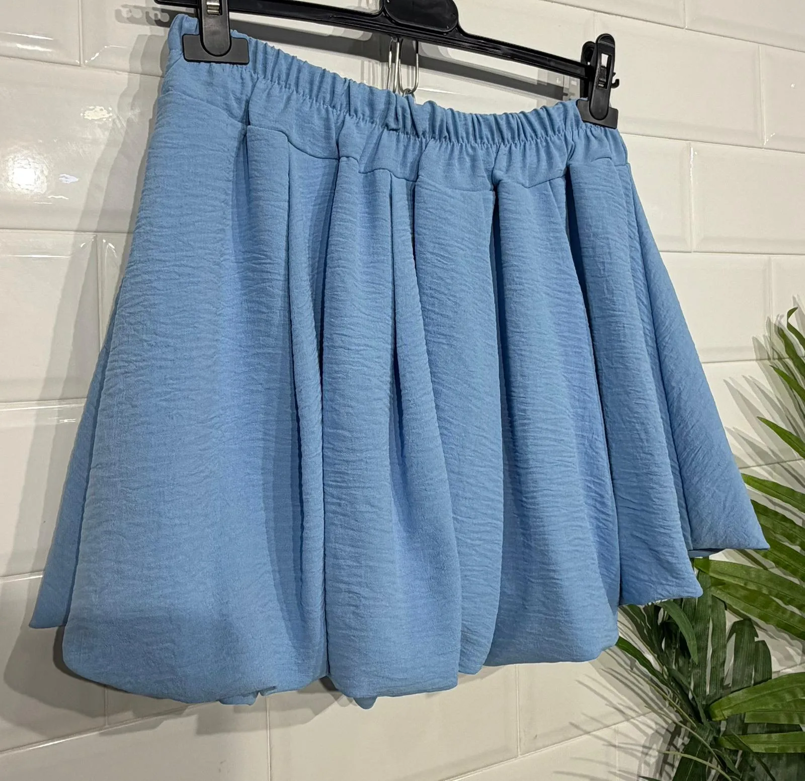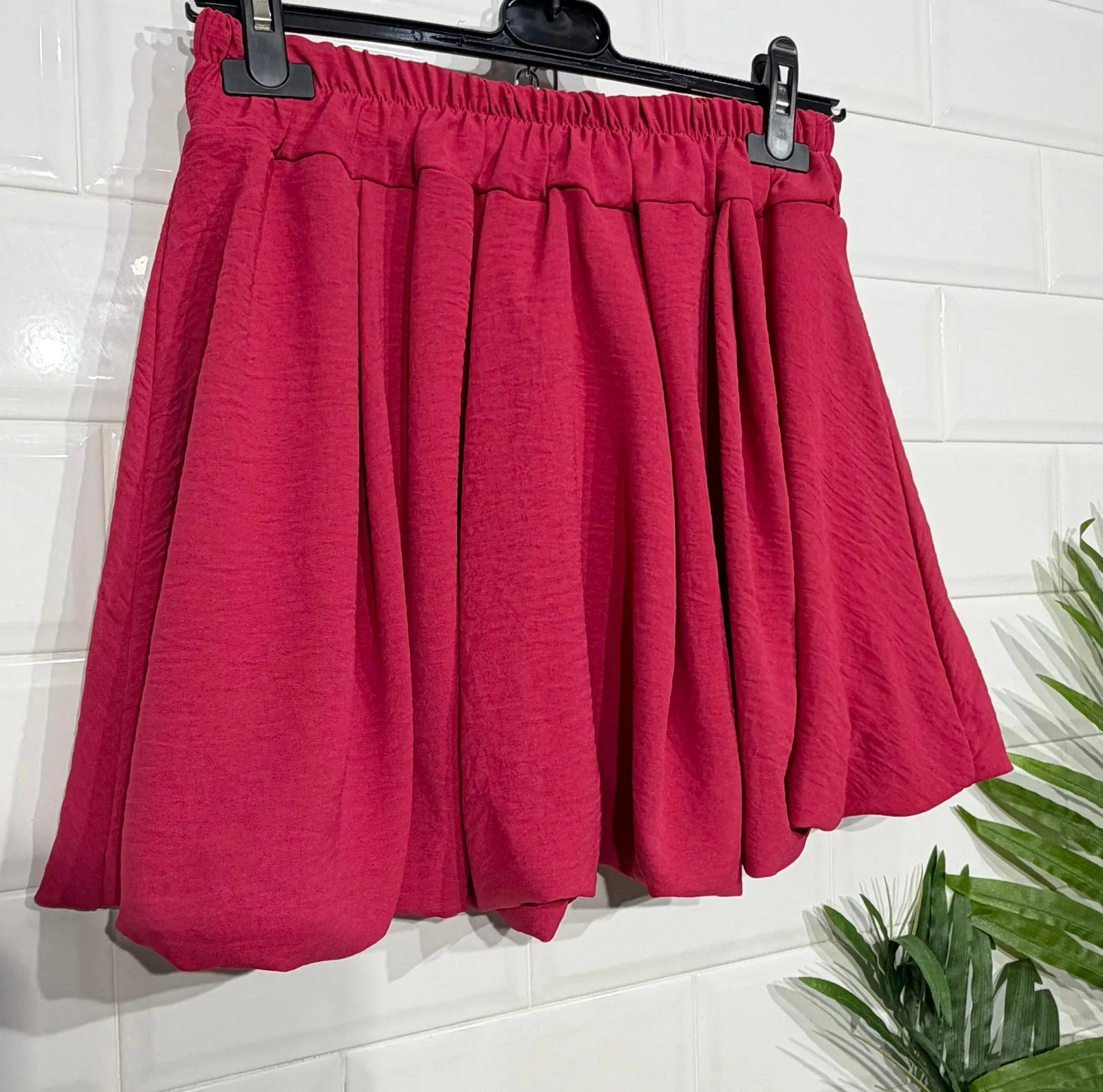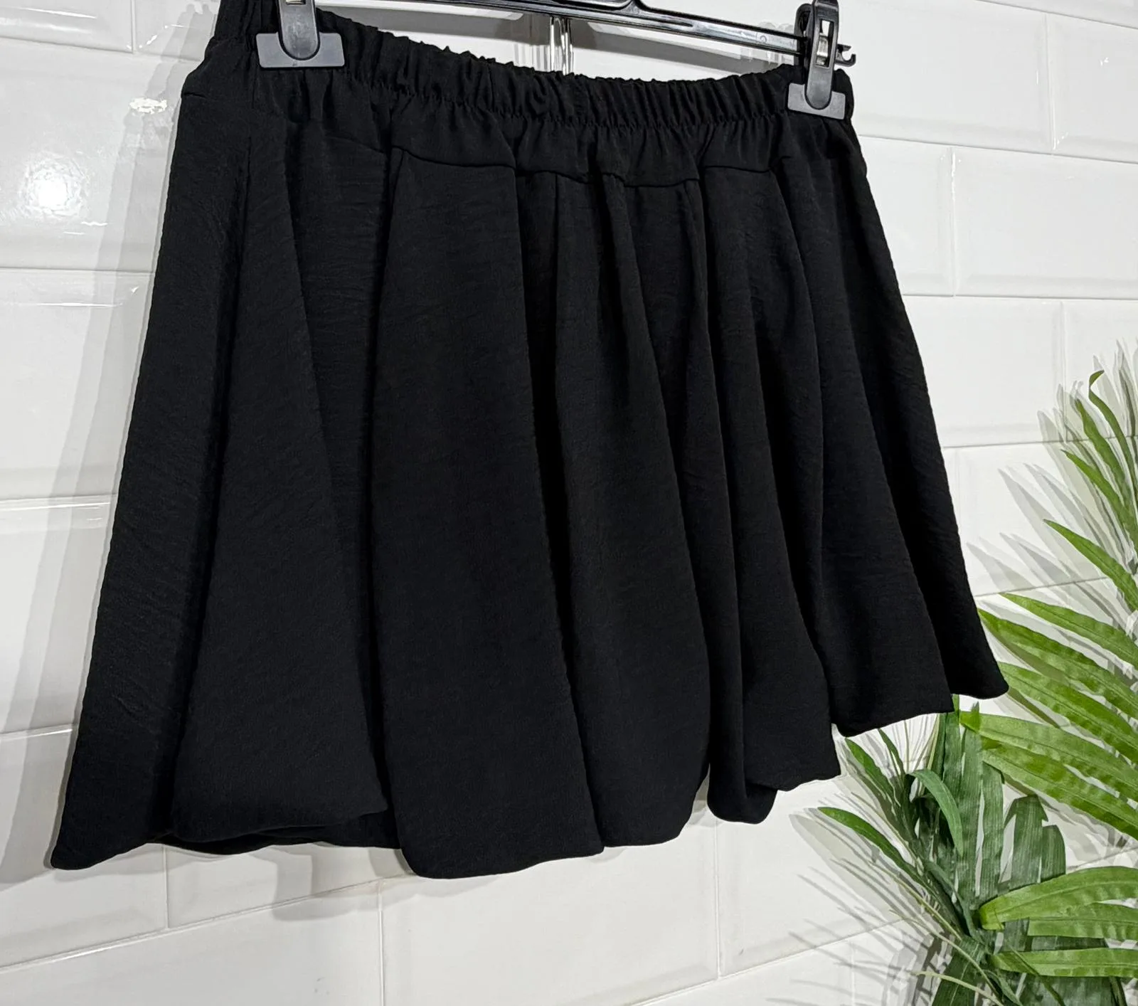 Falda corta estilo tulipán, con diseño envolvente y efecto recogido hacia dentro que realza la silueta. Su caída suave aporta un toque elegante y femenino, perfecta para cualquier ocasión.