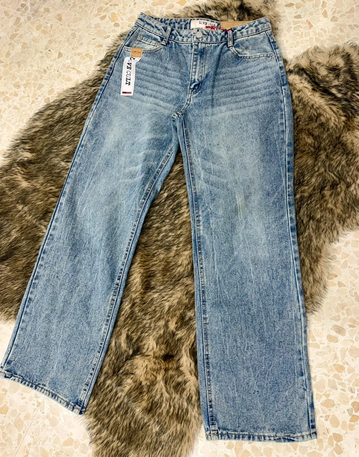 Estos pantalones jeans azul claro, de corte recto, ofrecen un estilo fresco y versátil, ideal para el día a día.”
