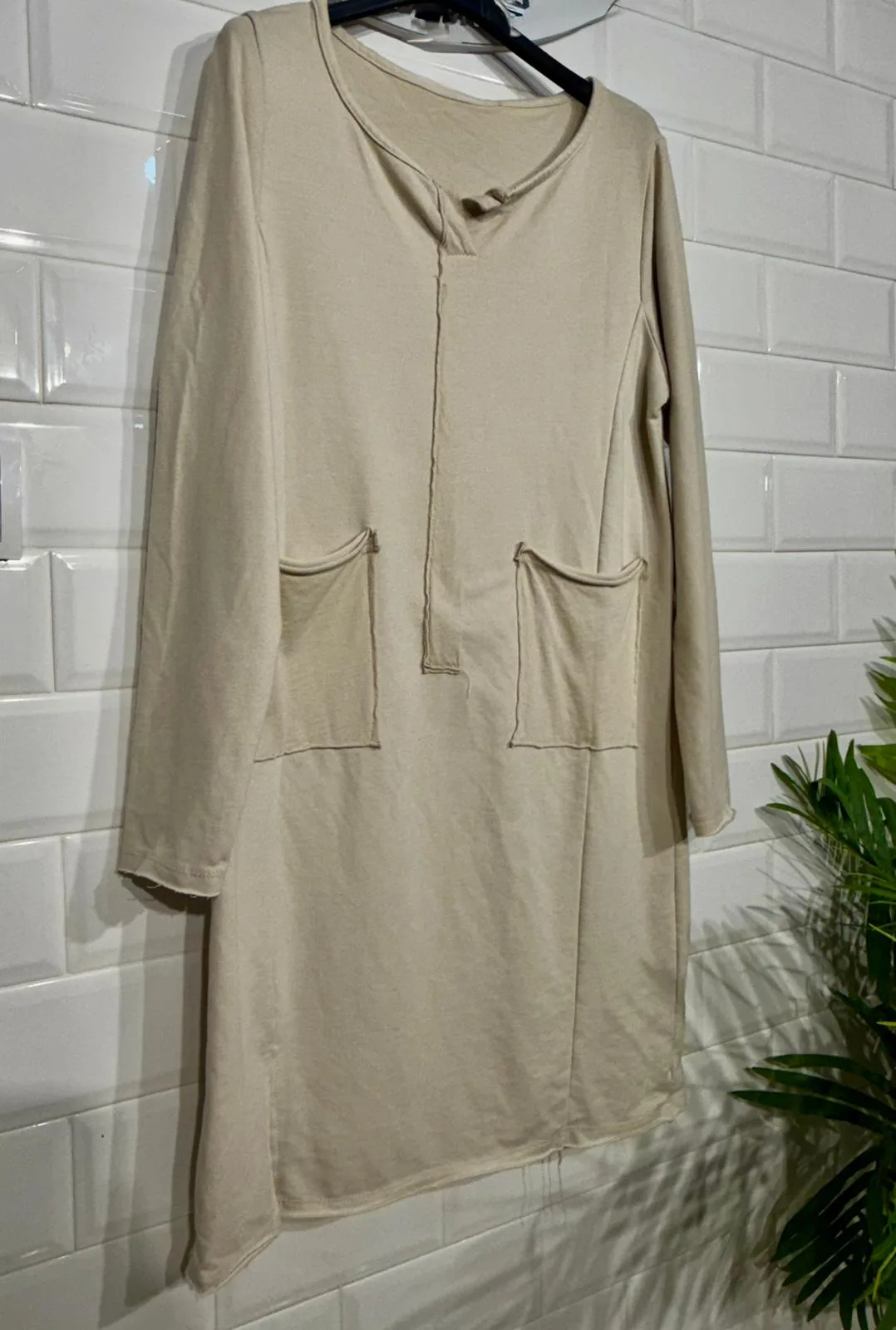 Vestido de algodón estilo sudadera, cómodo y suave, perfecto para un look casual y desenfadado.