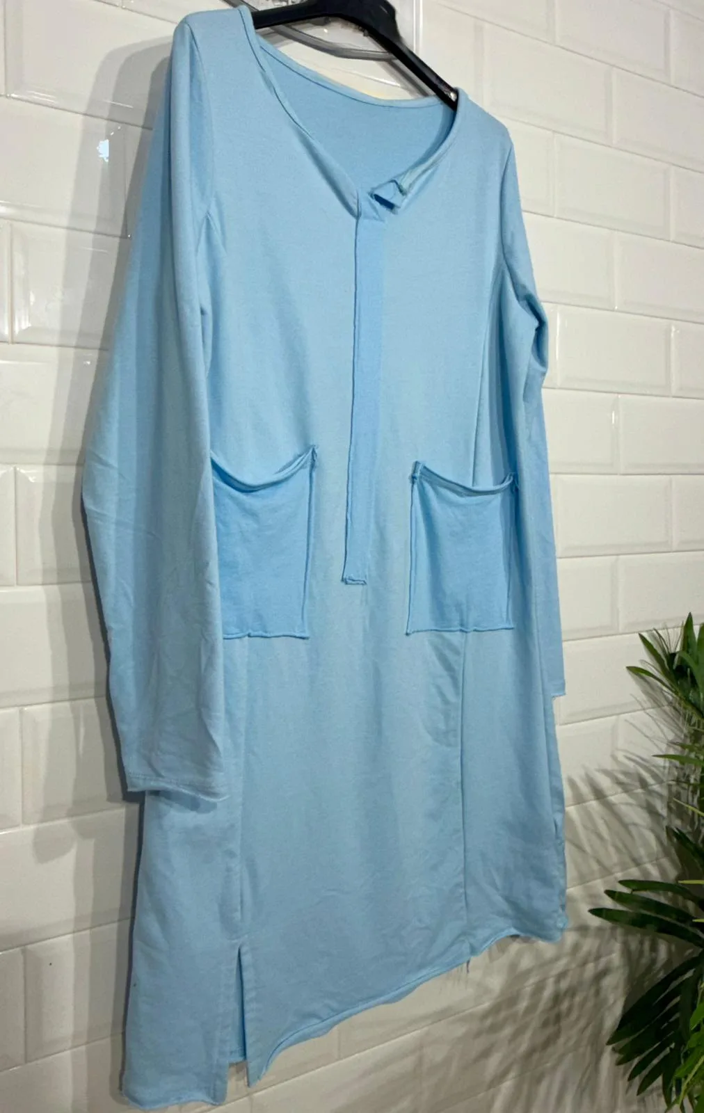 Vestido de algodón estilo sudadera, confeccionado en un tejido suave y cómodo que se adapta al cuerpo. Su diseño casual y relajado lo hace perfecto para el día a día, aportando un look moderno y desenfadado sin perder estilo.